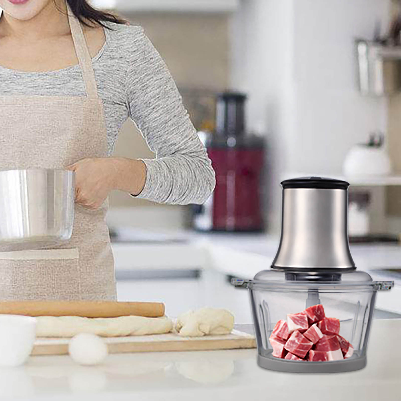 The chopper machine are perfect to chop both soft and hard ingredients such as meat,carrots,nuts and so on.